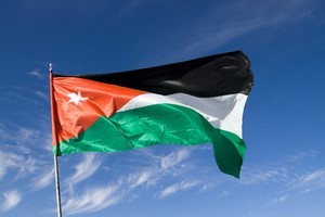 Jordan flag waving on a sunny and windy day in Petra